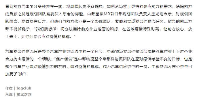 物流沙龍——一場汽車零部件物流的保供保產(chǎn)“接力賽”