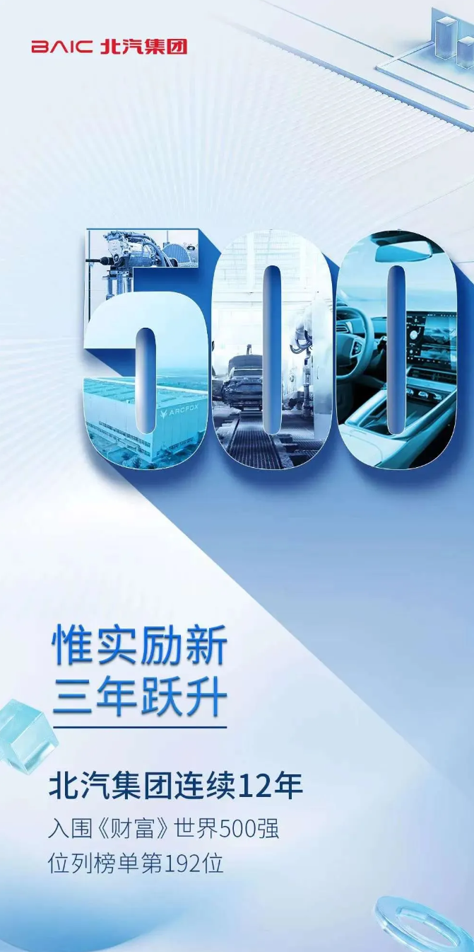 北汽集團連續(xù)12年入圍《財富》世界500強,位列榜單第192位